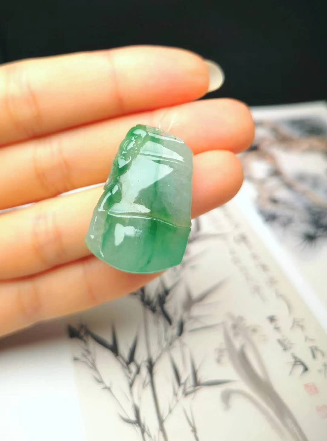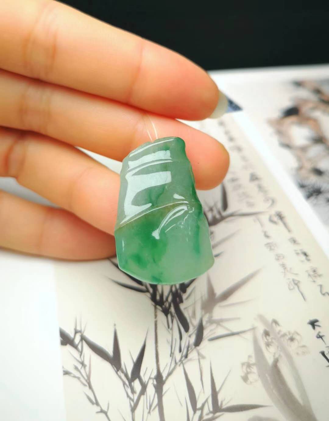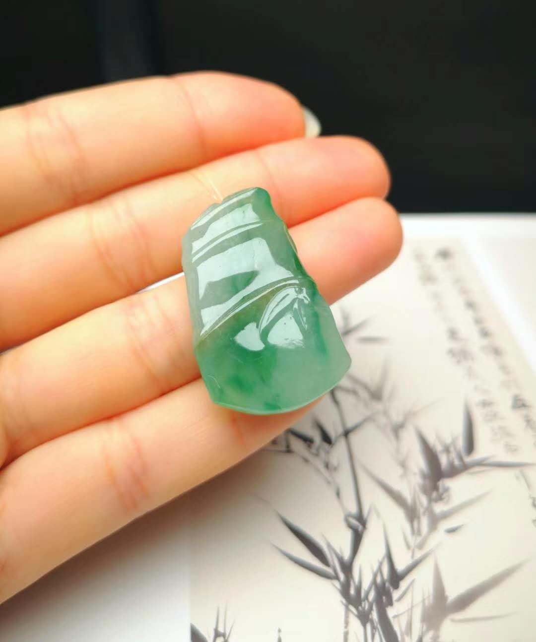 青葱翠竹,自上而下两条色根穿过,还是冰种质地,绿色已浸润散开,越戴越润,越戴越翠!高性价比老货,可遇不可求!