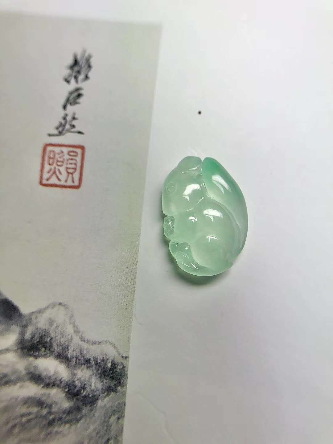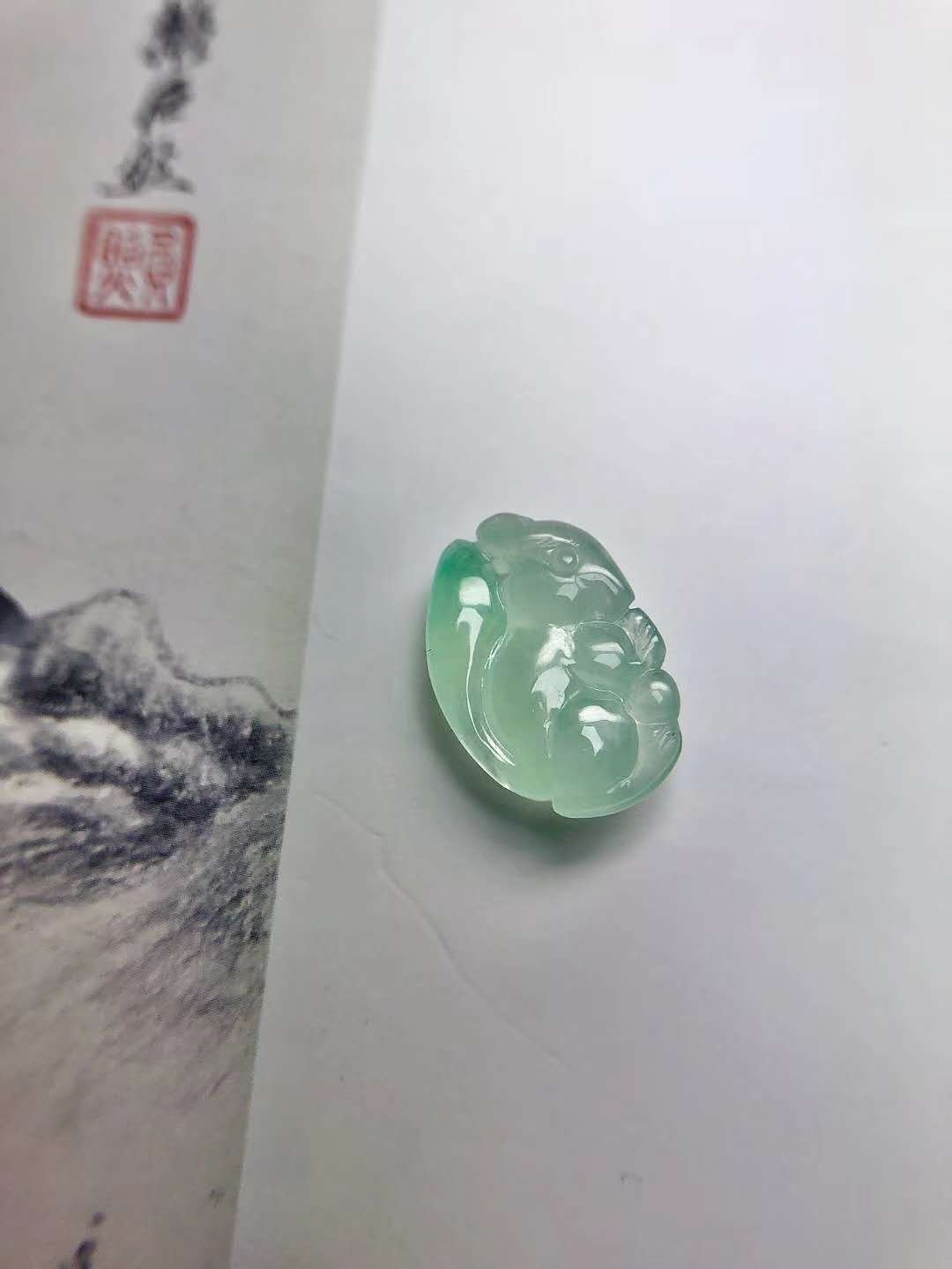 软萌可爱的翡翠松鼠,料子玉肉细腻甜糯达到镶嵌级别!